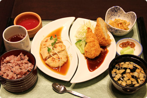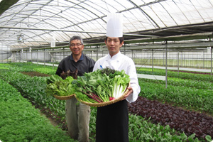 当店では福田病院「母と子の農園」で栽培された農園米をはじめ、熊本グリーン農業の有機野菜を中心に、無添加食品などを使い、お客様にいつも安全で安心してお召し上がり頂くよう心がけています。