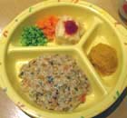 離乳食メニュー ◆ごっくんランチ(5~6ヶ月)初期 ¥210 ◆もぐもぐランチ(7~8ヶ月)中期 ¥260 ◆かみかみランチ(9~11ヶ月)後期 ¥310 ◆ぱくぱくランチ(1歳~1歳半) ¥360 *メニューは1ヵ月ごとに変更します。 ご家庭で参考にして頂けるように、 レシピを添えています。