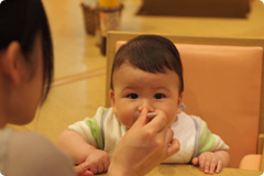 2007年に離乳期の赤ちゃんのためのレストランとしてオープンして以来、ママたちに大人気の「あかちゃんレストラン」。テーブルの中に、赤ちゃんが座る席を設けていますので、ママやパパと赤ちゃんが向い合って一緒に食事ができ、赤ちゃんの表情をしっかりと見ることができます。離乳食メニューも月齢に合わせ、「ごっくんランチ」「もぐもぐランチ」「かみかみランチ」「ぱくぱくランチ」の4種類。安心・安全な食材を使った離乳食は、とってもおいしく、赤ちゃんも大満足です!